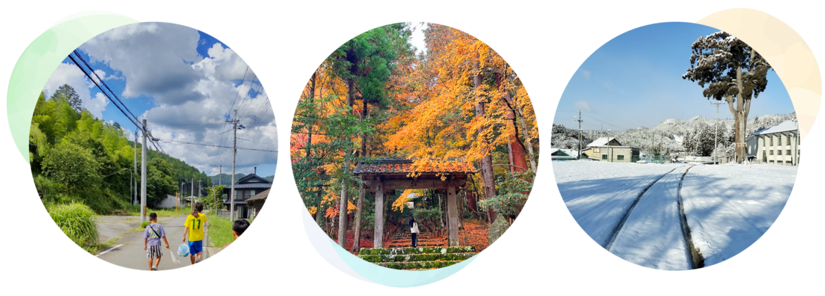 春の芽吹き、夏の川遊び、秋の収穫、冬の雪景色と、四季の変化を身近に感じながら日々を過ごすことができます。